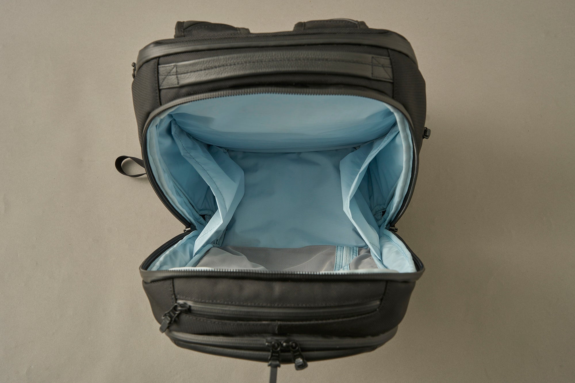 大きく開くメインコンパートメントは、スーツケースのように荷物が一目で見渡せ、出し入れもスムーズ。