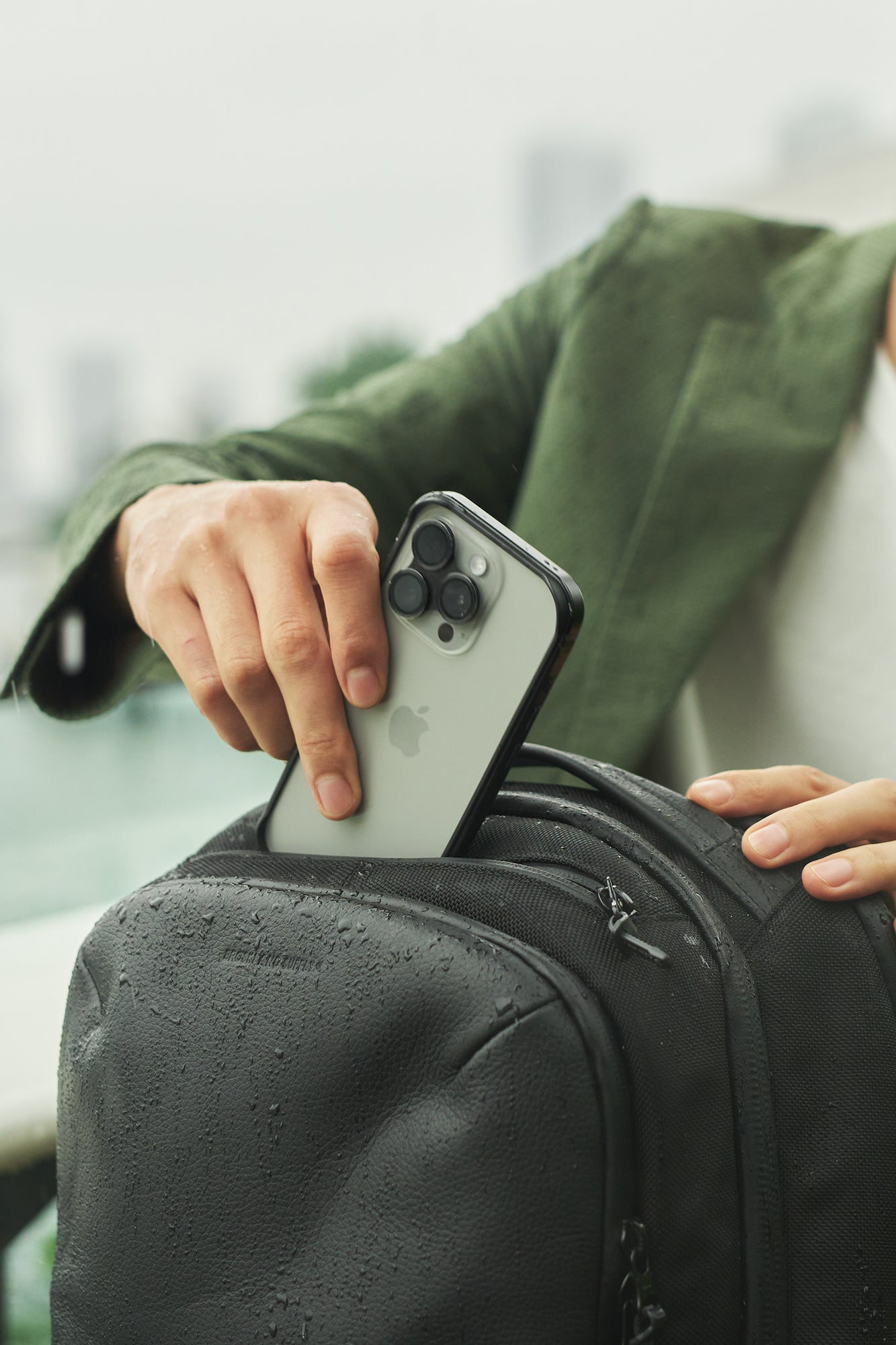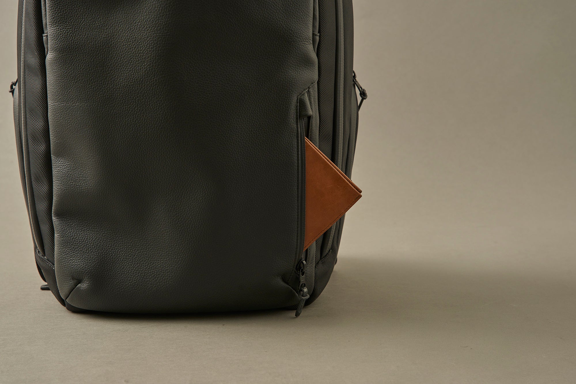 海外出張や空港移動を想定し、パスポート・スマートフォン・交通系カードなどを片手で瞬時に取り出せる配置にこだわりました。